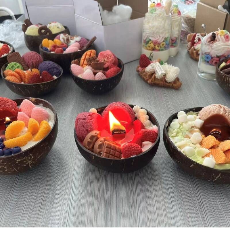 Candle in the shape of a cake or ice cream with fruit is a delicious surprise for the senses. With its original and colourful shape, it is able to transport us to happy and fun-filled moments. Its sweet and soft scent reminds us of summer days and those days of celebration, its warm and bright flame creates a cosy and relaxing atmosphere in any room. This candle is perfect for those who are looking for a touch of originality and joy in their home.